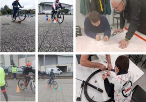 Dans le contenu des exercices nous avons aussi parlé des crevaisons, sens de rotations des pneus pour les VTT, des freins, du dérailleur et du blocage rapide serrage des roues.